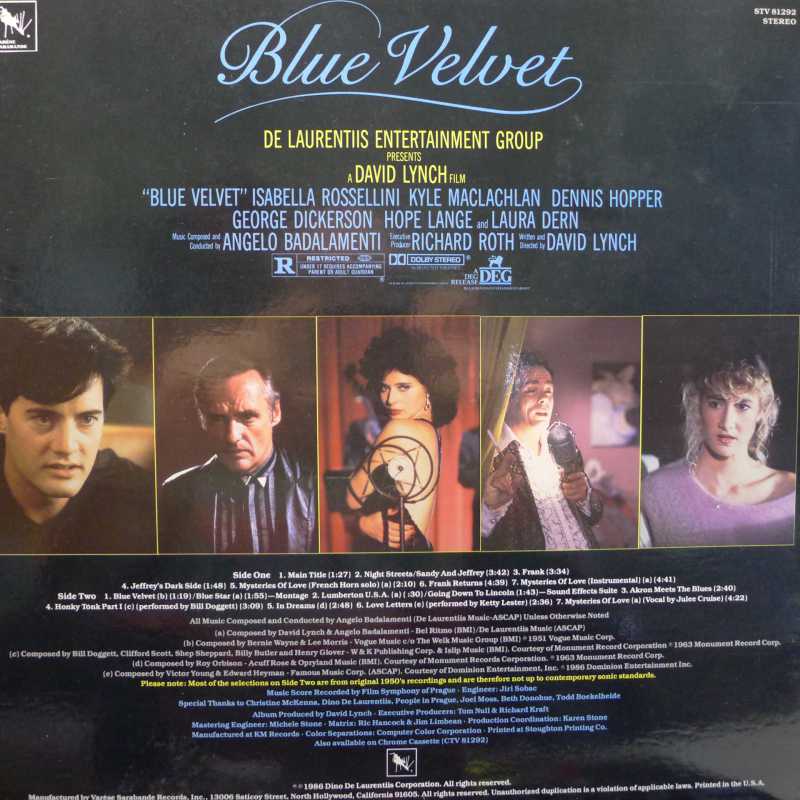 Angelo Badalamenti, Blue Velvet (Original Motion Picture Soundtrack), LP 1986 US, Varese Sarabande, płyta winylowa