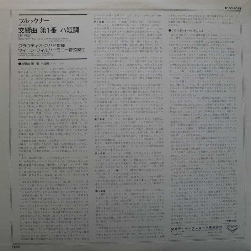 Anton Bruckner - Symphony No. 1 In C Minor, Claudio Abbado, Wiener Philharmoniker, LP 1980 Japan, London