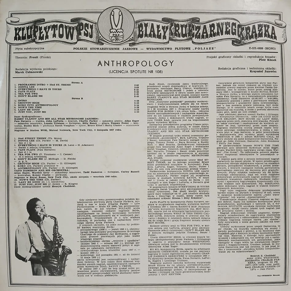 Barry Ulanov, Tadd Dameron, Anthropology LP 1979 Psj Poljazz płyta winylowa
