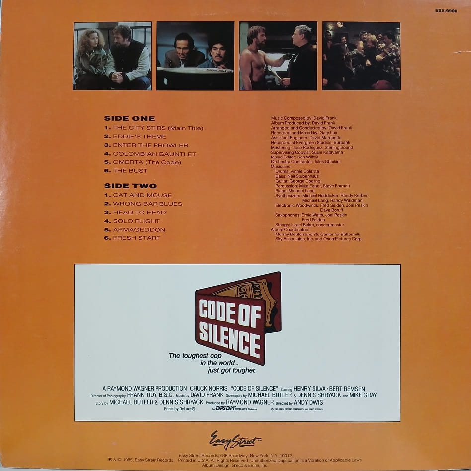 David Frank, Code Of Silence, Soundtrack, Chuck Norris LP USA 1985, płyta winylowa, Kod Milczenia