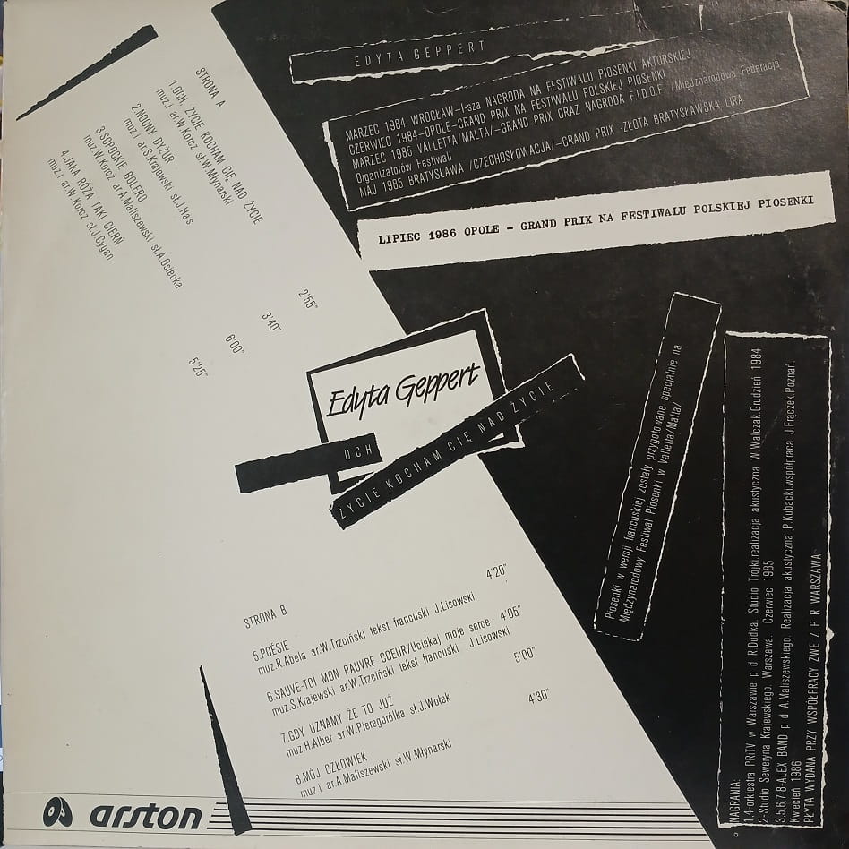 Edyta Geppert, Och Życie, Kocham Cię Nad Życie LP Arston 1986