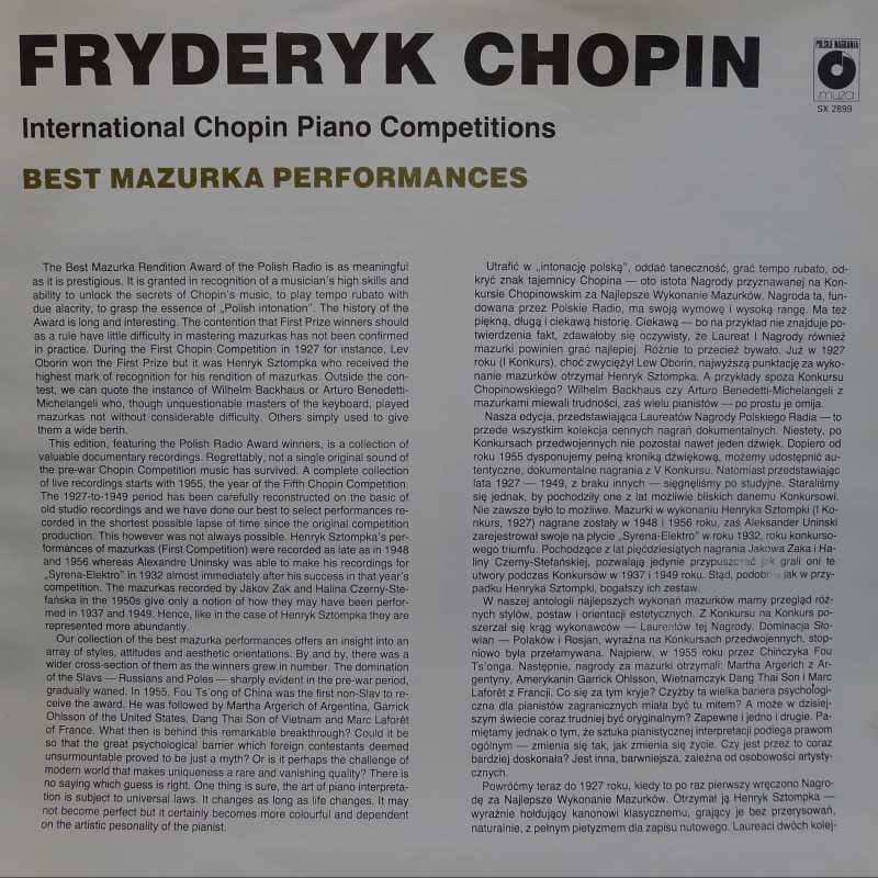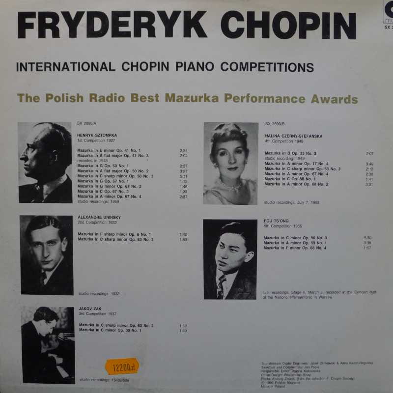 Fryderyk Chopin, International Chopin Piano Competitions, Best Mazurka Performances 1927-1955, Henryk Sztompka, Halina Czerny-Stefańska, Alexandre Uninsky, Fou Tsong, Jakov Zak, LP 1990 PL, Polskie Nagrania Muza, płyta winylowa