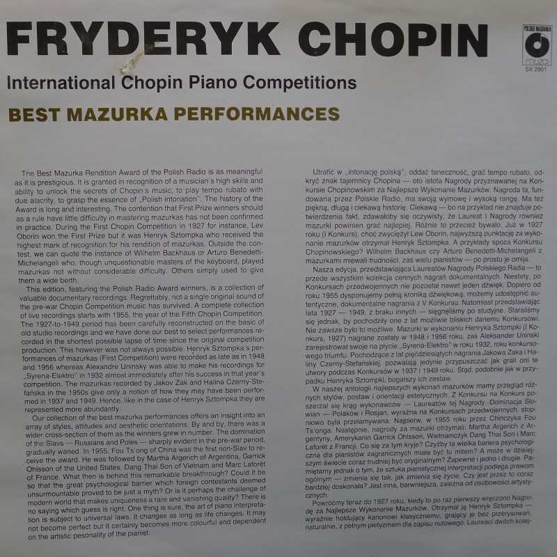 Frédéric Chopin - The Mazurkas Volume 1 , Arthur Rubinstein LP 1982 Japan, RCA, płyta winylowa (1)