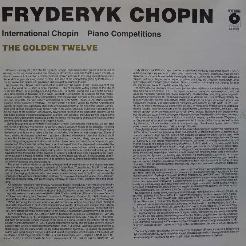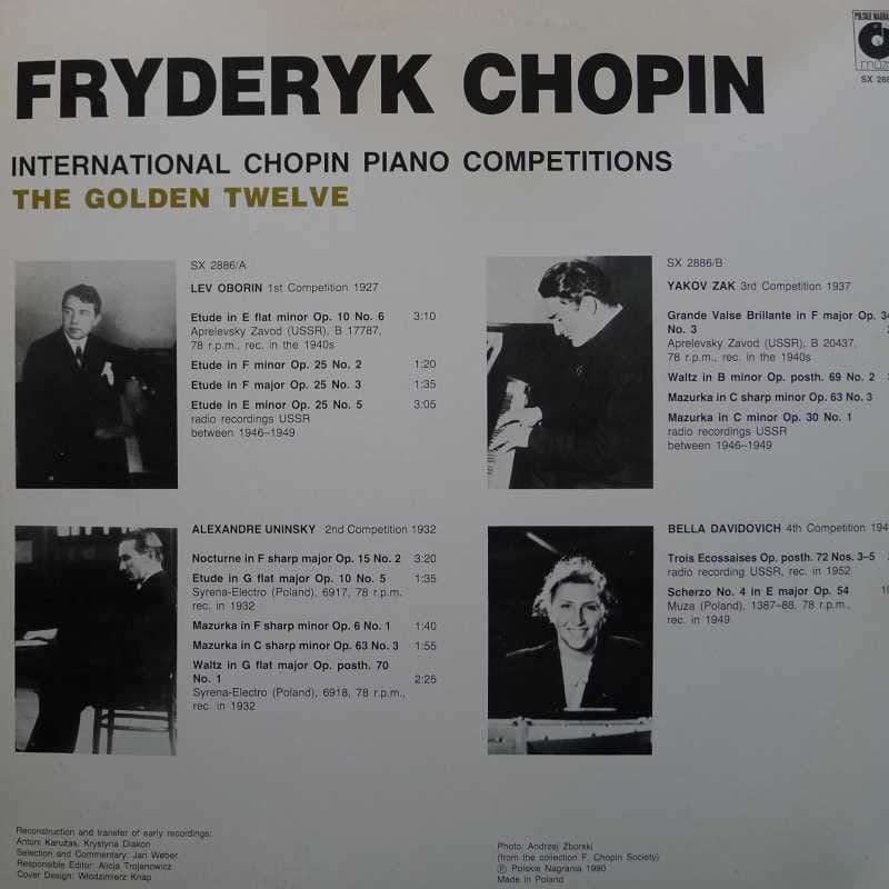 Fryderyk Chopin, International Chopin Piano Competitions, The Golden Twelve VOL 2, Lev Oborin, Alexandre Uninsky, Yakov Zak, Bella Davidovich, LP 1990 PL, Polskie Nagrania Muza, płyta winylowa