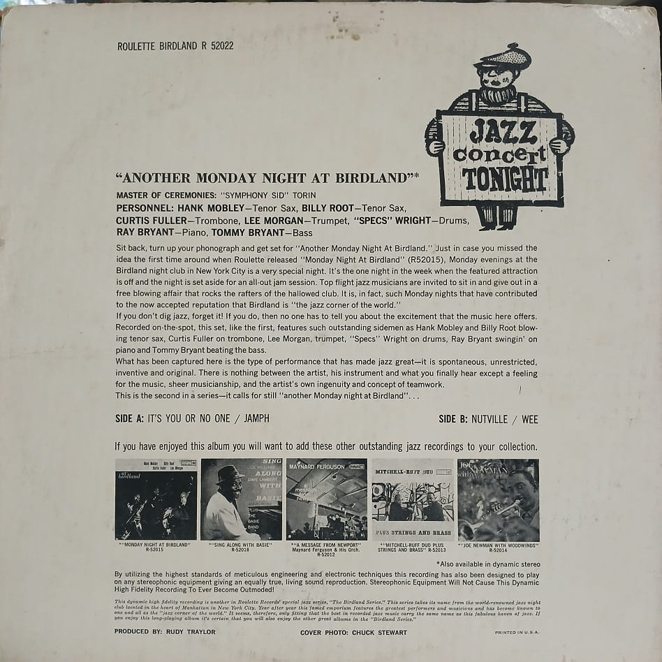 Hank Mobley, Billy Root, Curtis Fuller, Lee Morgan – Monday Night At Birdland LP Mono USA 1959, Roulette, płyta winylowa