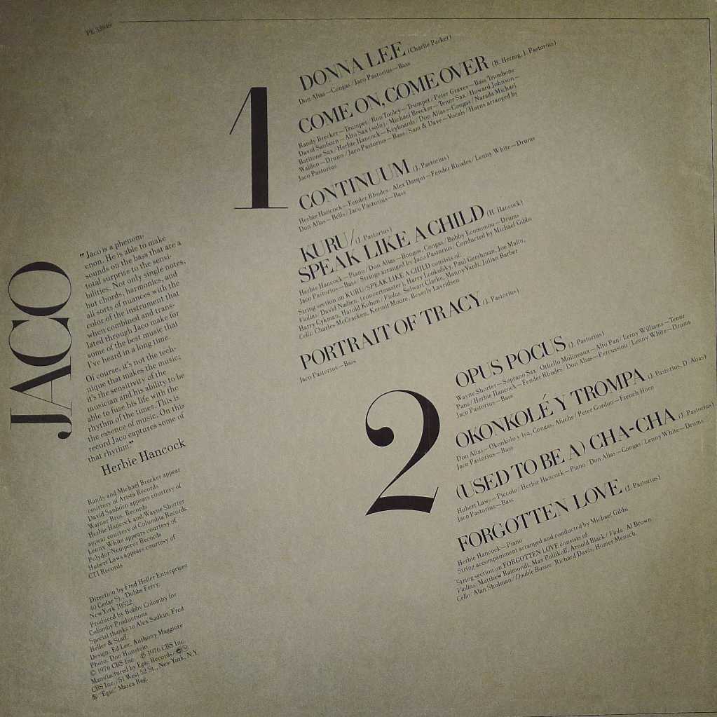 Jaco Pastorius - Jaco Pastorius, LP 1976 US