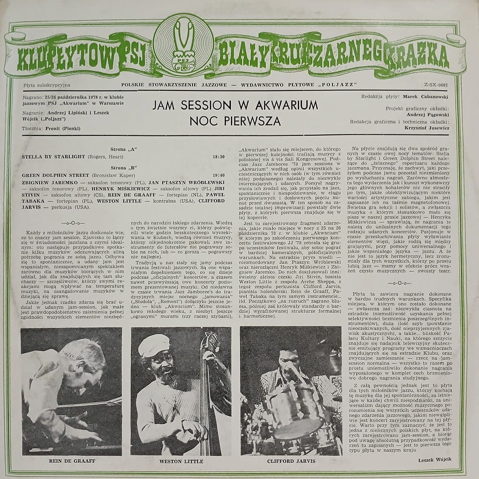 Jam Session W Akwarium (Noc Pierwsza) Rein de Graaff, Weston Little, Cliford Jarvis LP 1978 Psj płyta winylowa