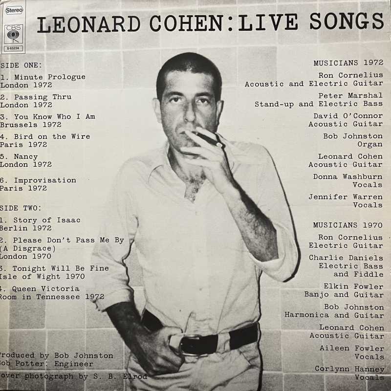 Leonard Cohen Live Songs LP 1973 Holland CBS