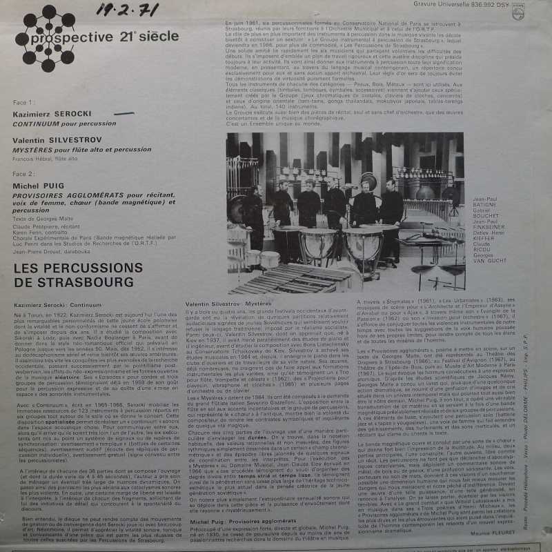 Les Percussions De Strasbourg, Serocki Continuum, Silvestrov Mysteres, Puig Provisoires Agglomerats, LP 1969 France Philips, płyta winylowa