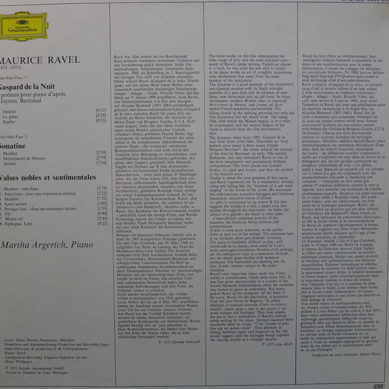 Maurice Ravel, Martha Argerich, Gaspard De La Nuit • Sonatine • Valses Nobles Et Sentimentales, LP 1975 Germany, Deutsche Grammophon, płyta winylowa