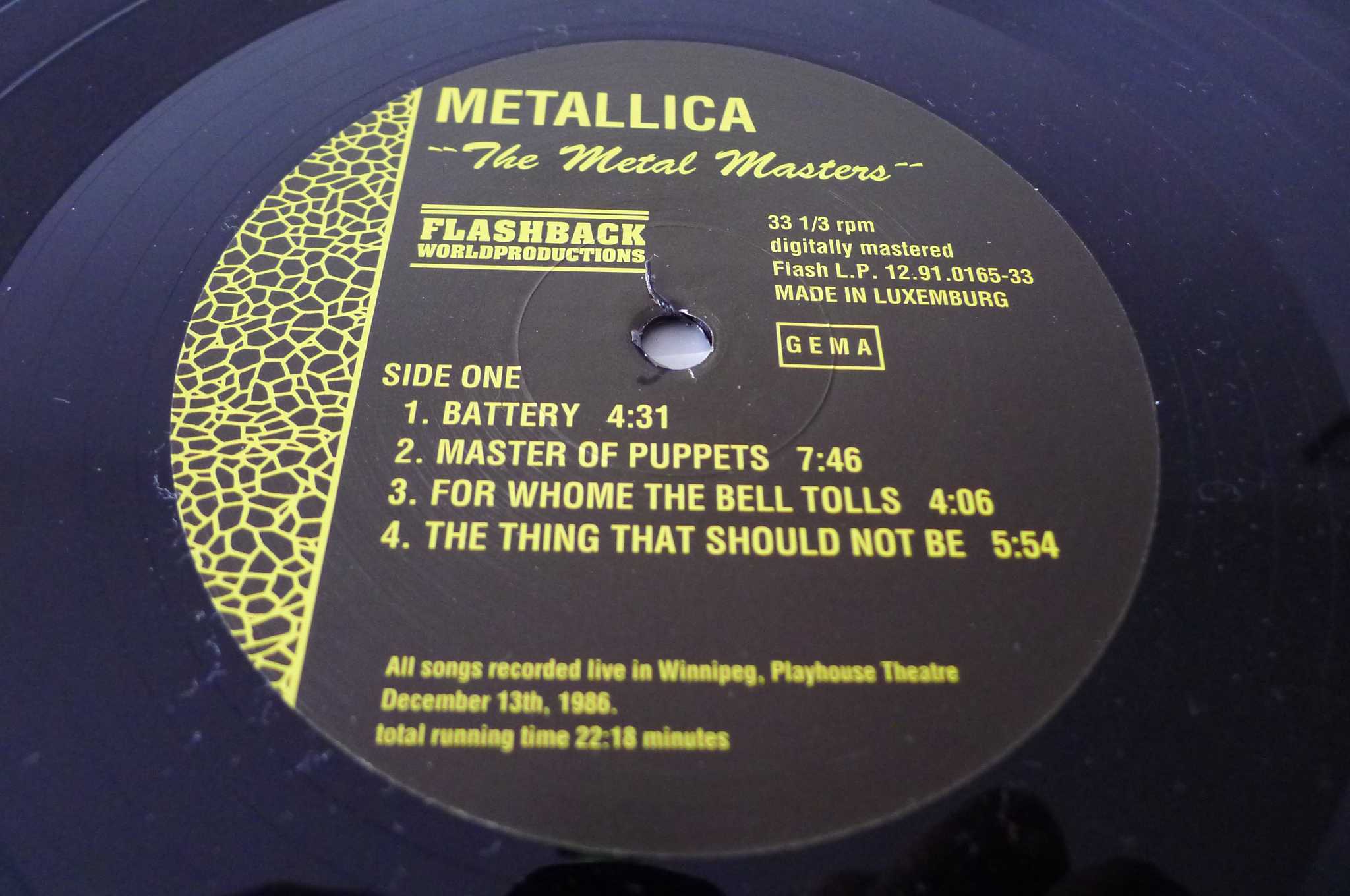 Metallica - The Metal Masters, LP 1991 Luxembourg, Unofficial Release