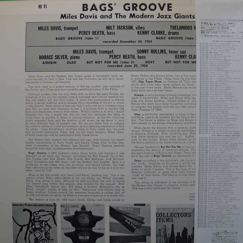Miles Davis, Bags Groove, LP 1984 Japan, Prestige, płyta winylowa