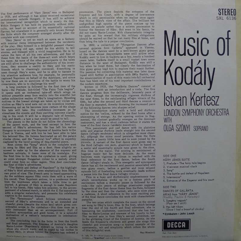 Music Of Kodály Istvan Kertesz , LP 1965 UK, Decca, płyta winylowa, audiophile