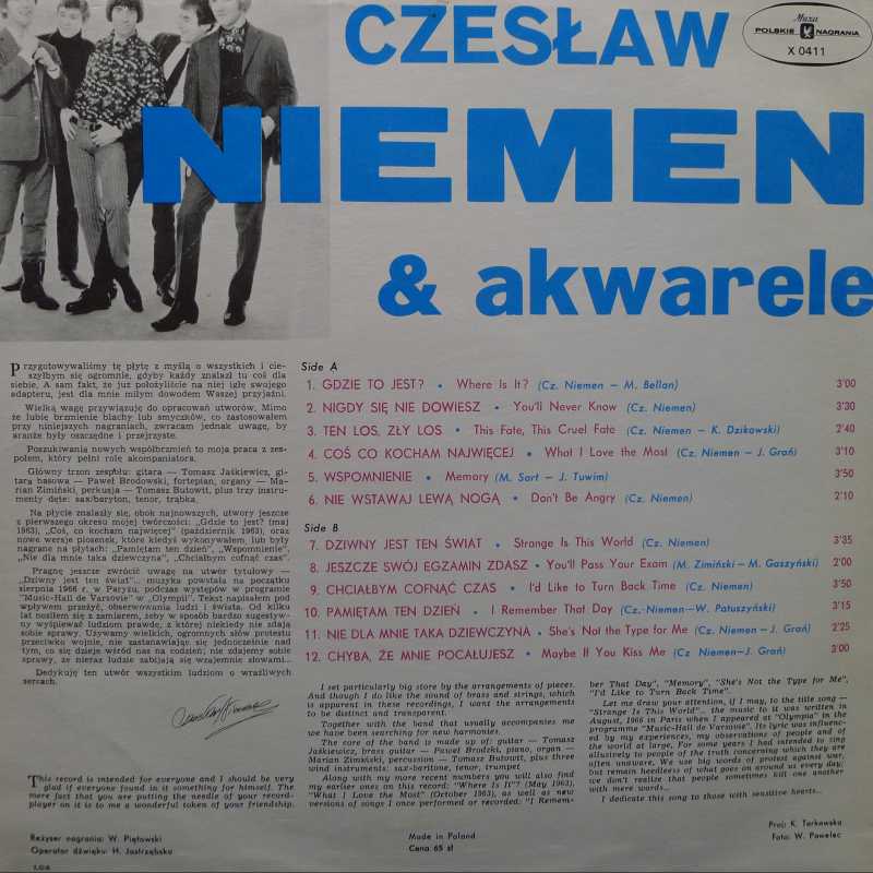 - Wytwórnia / numer katalogowy: Polskie Nagrania Muza / X0411