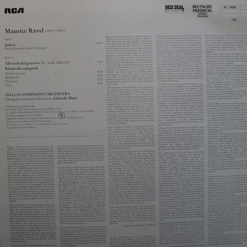 Ravel, Bolero, Eduardo Mata, LP 1980 Germany, RCA, płyta winylowa
