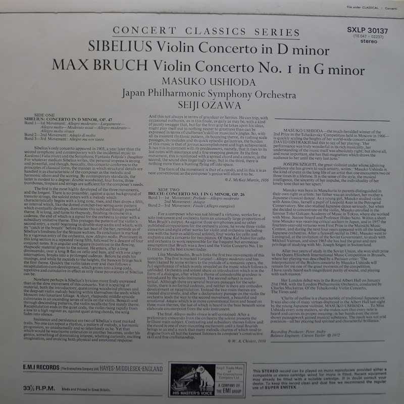 Sibelius, Bruch, Violin Concerto, Masuka Ushioda, Seji Ozawa, LP 1972 UK, EMI/His Masters Voice, płyta winylowa