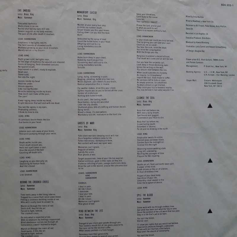 Slayer, South Of Heaven LP 1988 EU, Def Jam Recordings , płyta winylowa