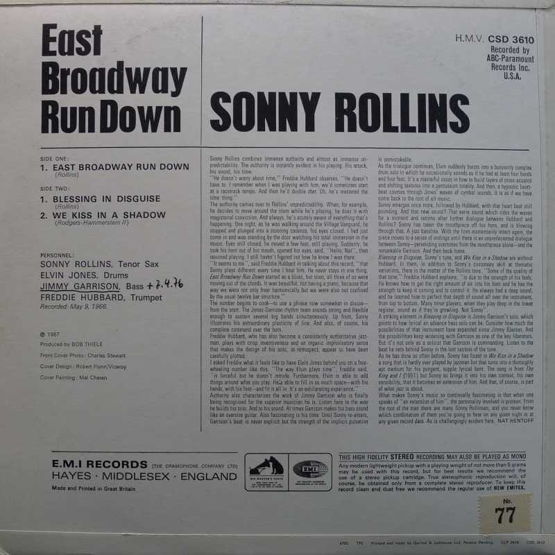 Sonny Rollins, East broadway run down, LP 1967 UK, His Masters Voice, płyta winylowa