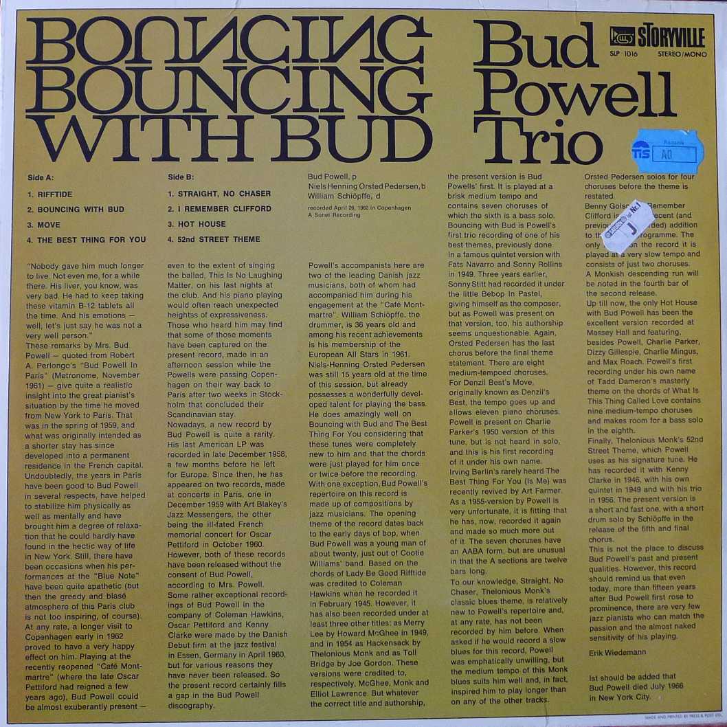 The Bud Powell Trio Bouncing With Bud LP