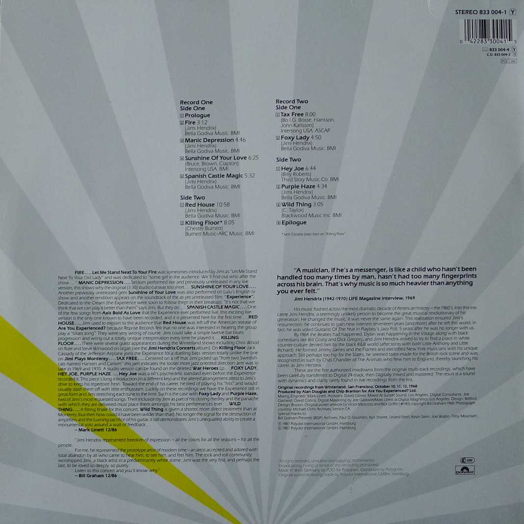 The Jimi Hendrix Experience - Live At Winterland, 2 LP 1987 Germany , PLAKAT